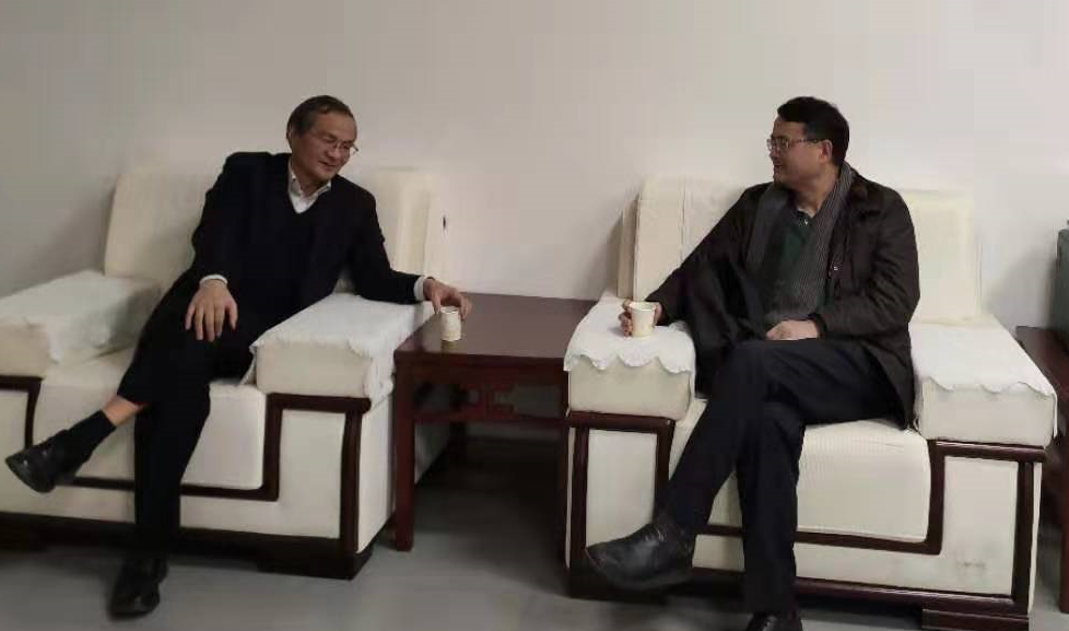 刘昌龙书记(左一)向王向荣教授(右一)介绍理学院发展情况