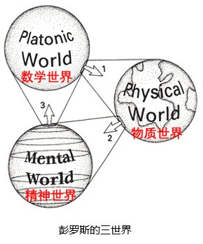 彭罗斯的三个世界,把物质、精神和数学相互交叉相互依赖地联系起来,其图像简单明了,又似乎揭示了世界背后深刻的哲学真相,令人回味无穷。我们当然可以质疑:精神世界是否都是从物质世界中产生?所有的数学是否都是由精神世界创造,还是客观存在,只是被发现?物质世界的所有规律是否都是数学结果,而不受精神直接控制?撇开这些争议不谈,可以肯定的是,任何一个科学家,至少在从事科学研究时,必然假定了至少在自己研究领域中的物质世界是有规律并且可以被数学公式描述的。